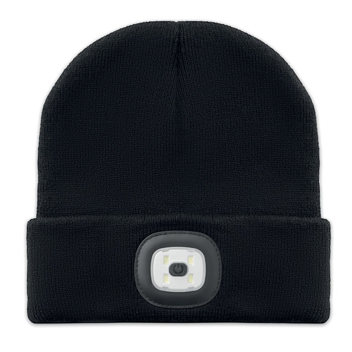 Akrilinė kepuraitė su nuimama COB lempute priekyje. 3 ryškumo lygiai. Komplekte yra 150 mAh įkraunama baterija ir USB įkroviklis.