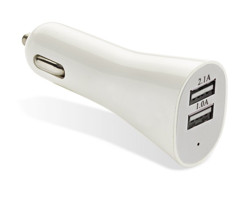 Kreivos formos automobilio įkroviklis leidžia per USB prievadus vienu metu įkrauti du mobiliuosius įrenginius. Parametrai: - įvestis: 12 V, išvestis: USB 5V / 2,1A + 1A.