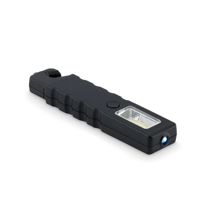 Avarinis plaktukas, saugos diržų pjaustytuvas ir COB lemputė su magnetu. 3 šviesos nustatymai. Į rinkinį įeina 4 LR41 baterijos.