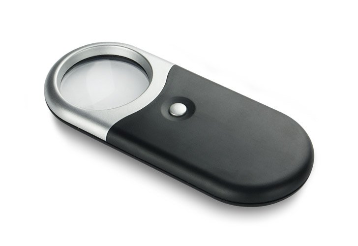 Praktiškas padidinimo stiklas su LED lempute, kurios dėka tekstas bus dar labiau matomas.