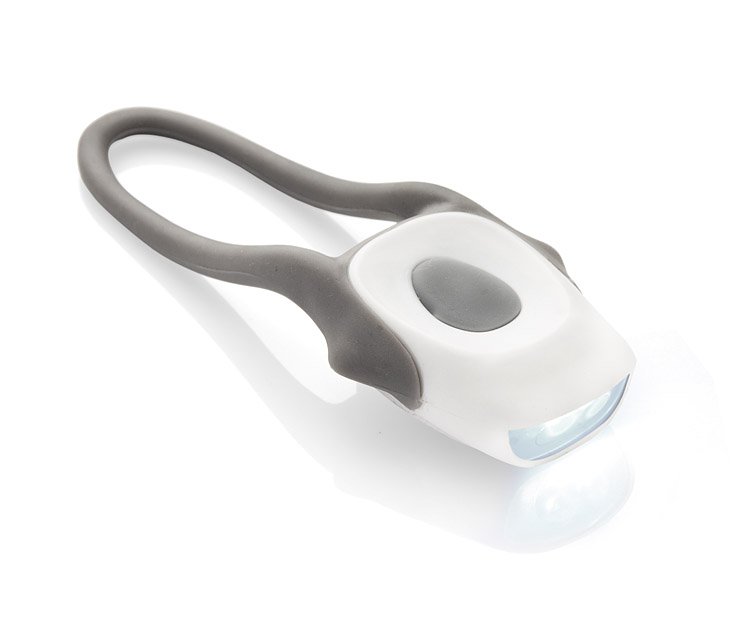 Praktiškas dviračio žibintas su 2 šviesos diodais ir silikoniniu dviračio laikikliu. Priekinis žibintas su baltais diodais.