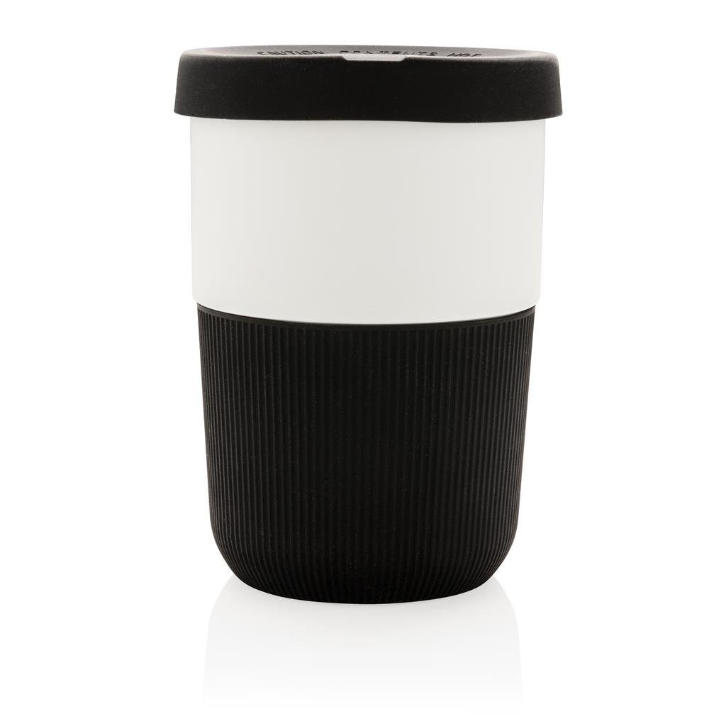 A sustainable alternative to traditional cups! Bringing style and practicality to your morning commute, this PLA coffee cup is ideal for transporting your favourite hot beverage. Manufactured from plant material (PLA), so not only stylish but also kind for the planet. Comes with a silicone grip and lid for your convenience. 100% melamine free. Capacity 380ml.