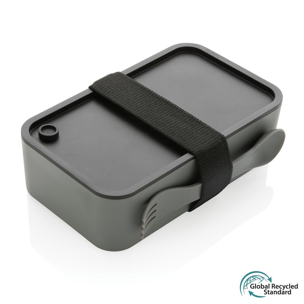 This stylish and sturdy lunchbox fits perfectly with a healthy lifestyle! It is big enough for carrying sandwiches and delicious salads, but also for heating up your warm meals. Made with 93% GRS certified recycled PP, GRS certification ensures a completely certified supply chain of the recycled materials. Dishwasher and microwave safe. Including a handy spork and elastic strap. Capacity 1.2 litre.