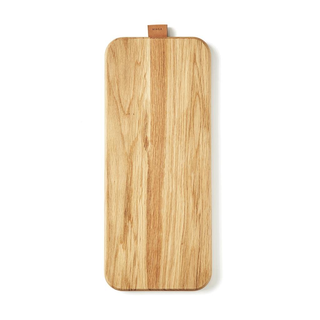 Exclusive oak serving board with a fine faux leather detail. Excellent for serving, and, when not in use, the cutting board is a nice detail on the kitchen counter. Made from FSC-certified oak wood produced through responsible forestry practices that respect people and the environment.