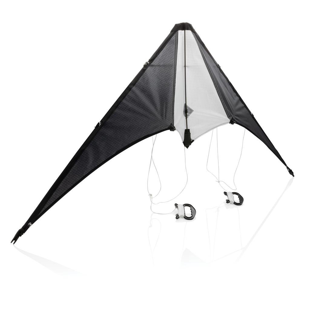 Delta kite packed in pouch to bring it to the beach or your holiday destination. With 30 meter cable with handles to let the kite fly high in the sky. Made from strong ribstop polyester.