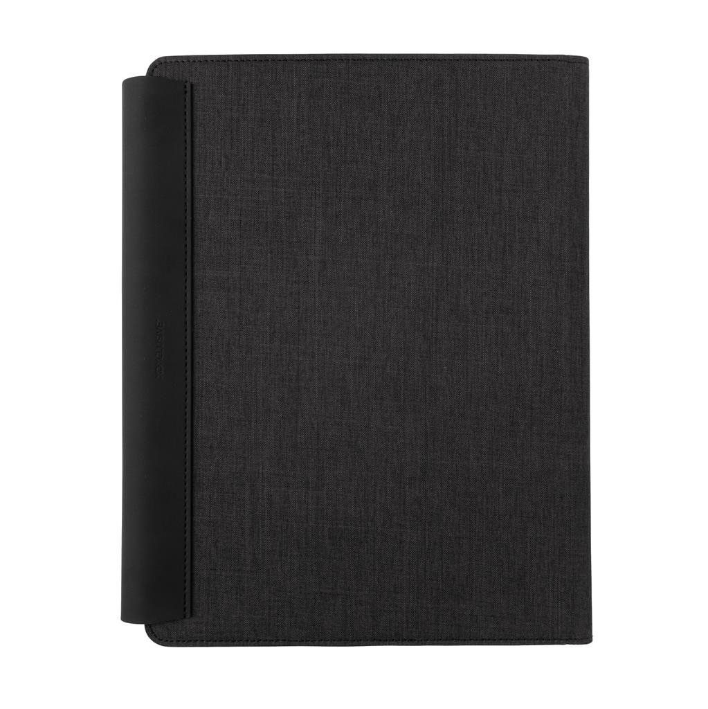 Beautiful and practical: this A4 portfolio offers wireless-charging capability so you are always connected. The included external powerbank can be used on its own as well. The sleek portfolio features a built-in wireless charging phone stand, elastic pen loop, 3 business cards alots and additional pockets. The notepad includes 20 sheets of 80 gsm cream-colored lined paper. Made with material mix of RPET and PU. Input: 5V/2A; Output:5V/2A. Wireless input 5V/2A, Output 5V/1A. Comes in full color gift box.
