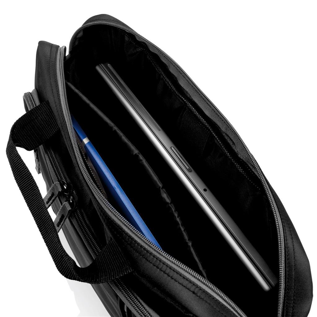 Nešiojamojo kompiuterio krepšys su pilkos spalvos zomšos detalėmis, 2 priekinės kišenės su skyriais ir 1 pagrindinis skyrius su nešiojamojo kompiuterio dėklu, tinka 15,6 colio nešiojamam kompiuteriui. Paminkštintos petnešėlės.
