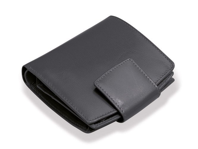 Odinė piniginė su vieta monetoms, 2 skyreliai užrašams, 5 skyreliai kreditinėms kortelėms, 4 skyreliai dokumentams. Piniginė atskirai supakuota į medinę dėžutę.